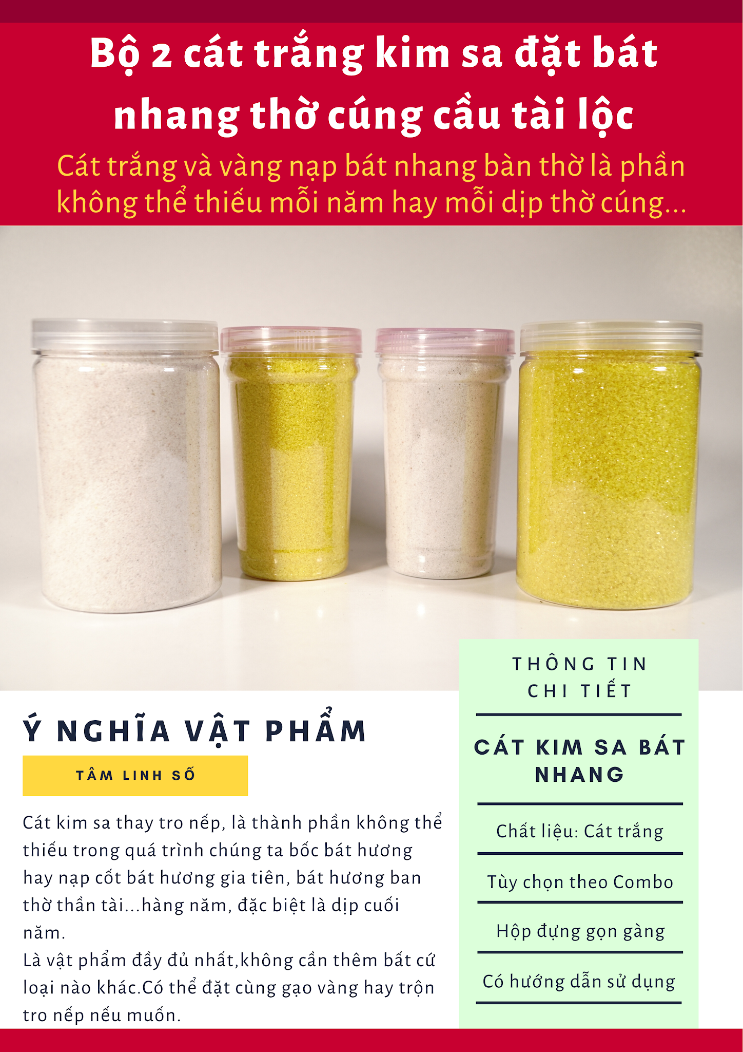Cát kim sa trắng bốc bát nhang, cát đặt lư hương bàn thờ siêu mịn, siêu sạch - Hộp 0,5kg và 1kg