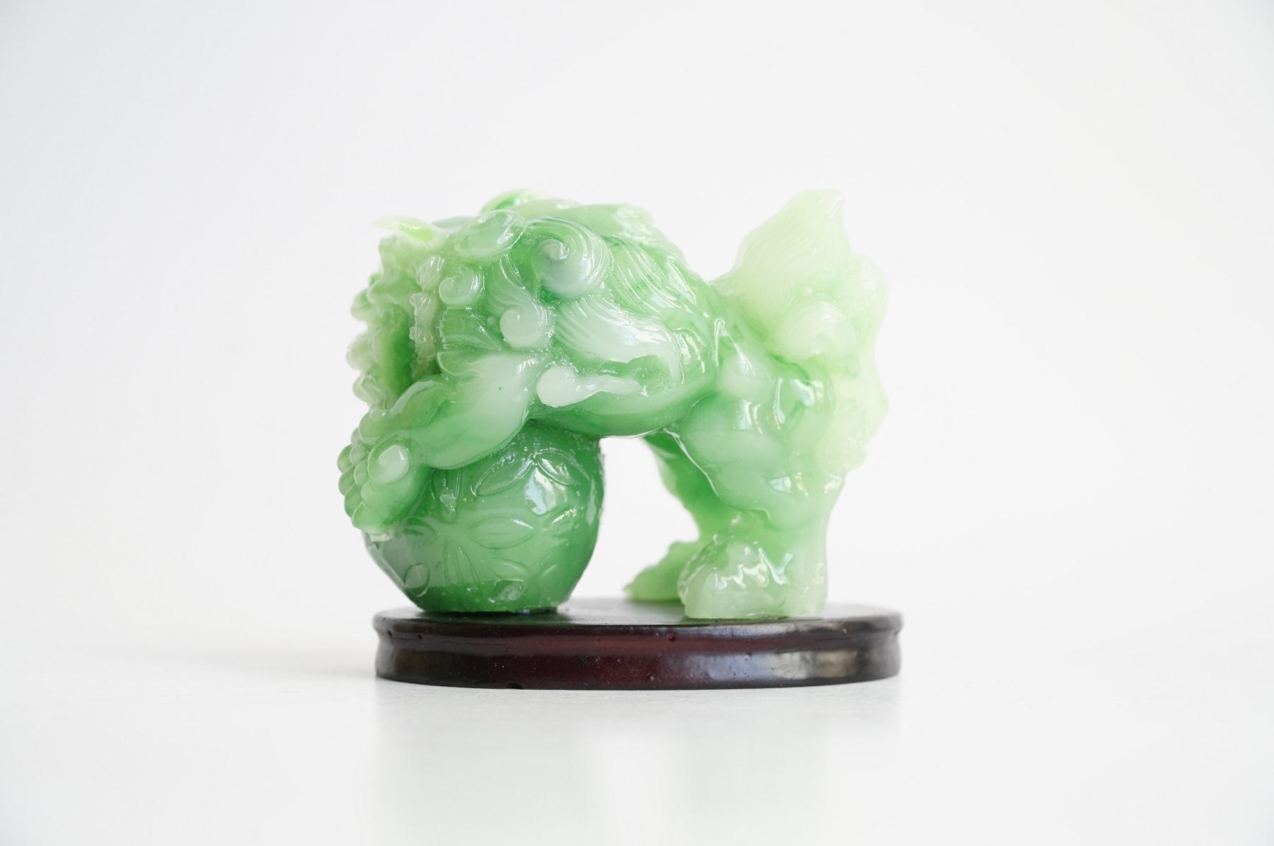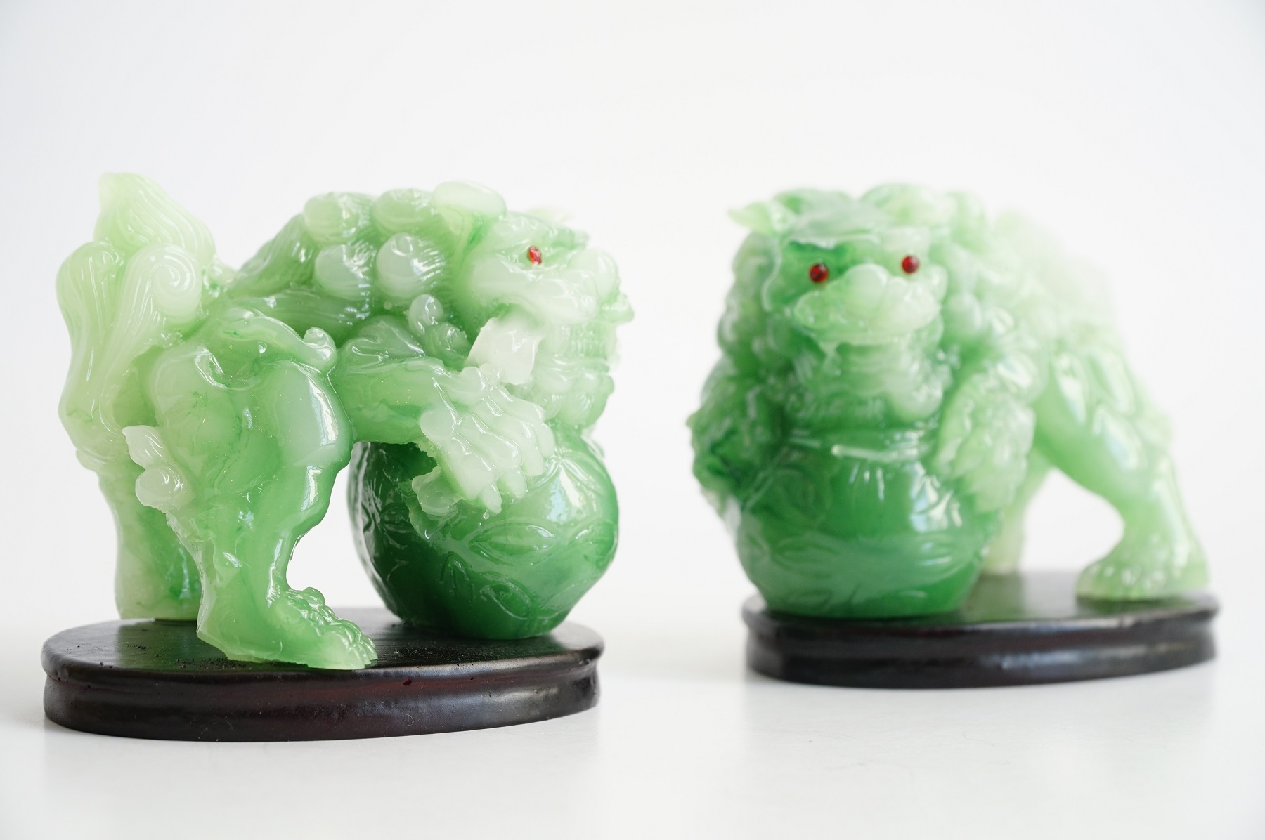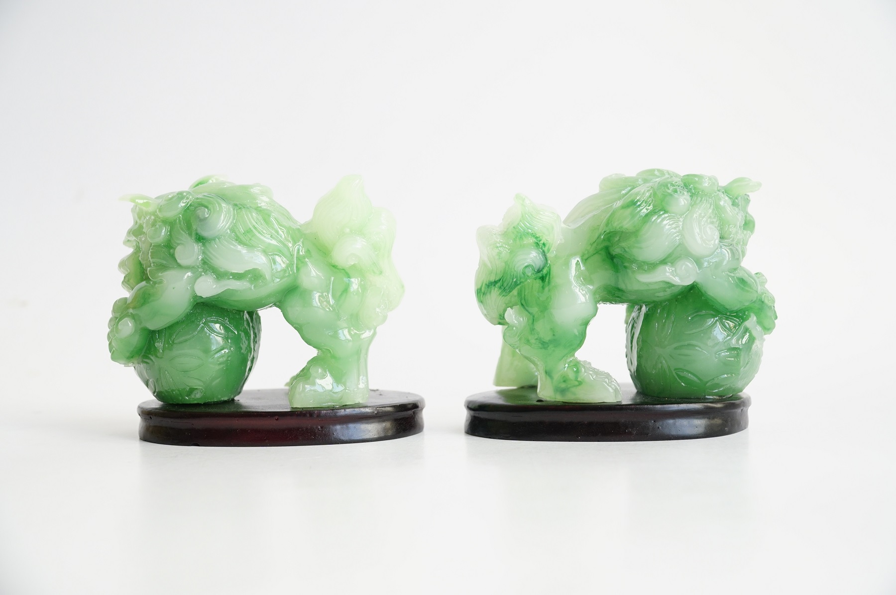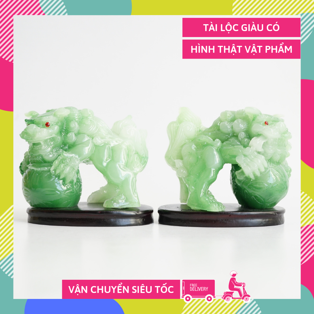 Cặp tượng Kỳ Lân có kích thước 8x8cm, được làm bằng đá cao cấp, màu gỗ rất sang trọng, tạo hình cặp Kỳ Lân ôm ngọc rất tinh xảo.