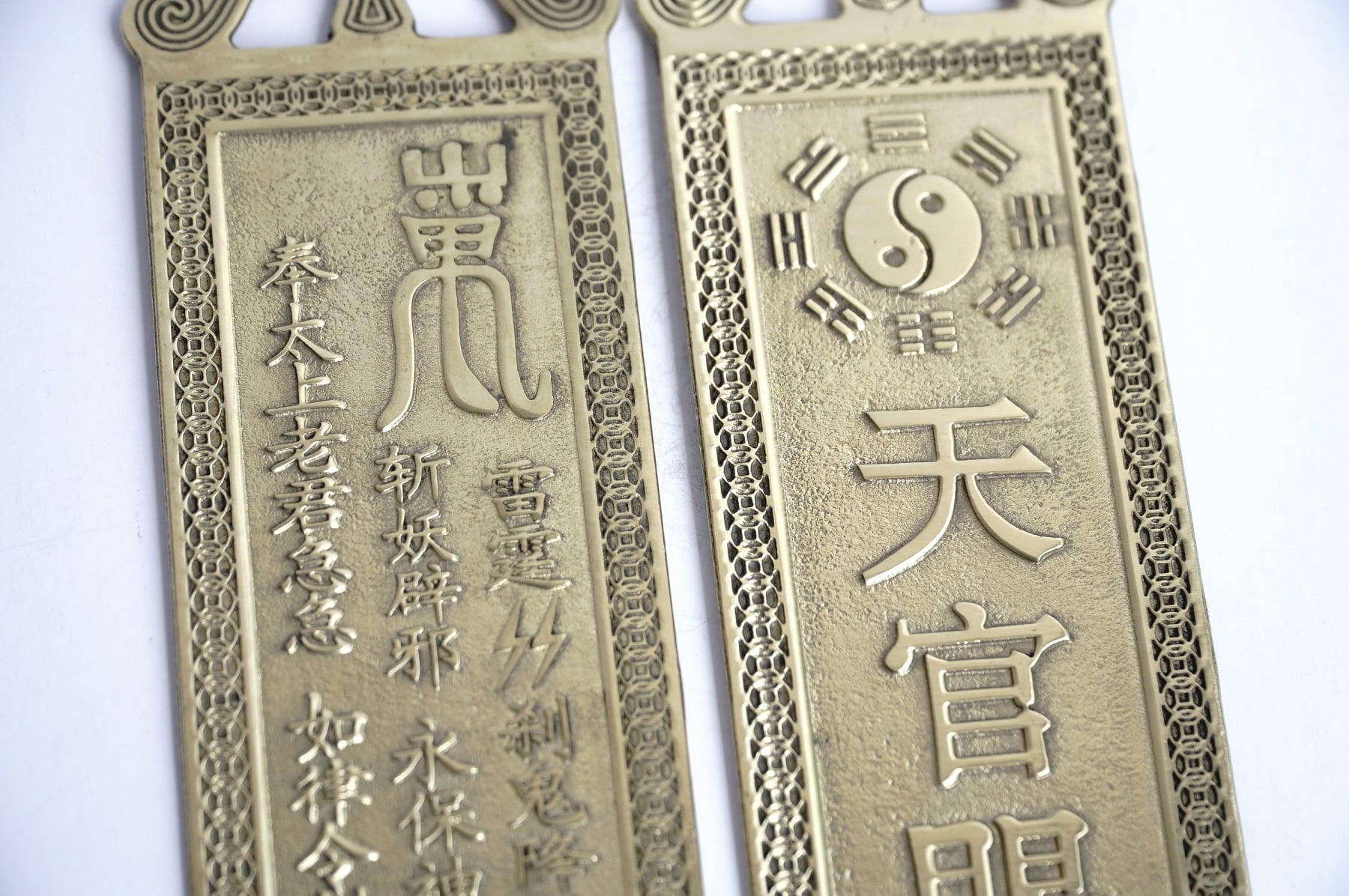 Tâm Linh Số cung cấp 6 loại kim bài đồng treo cửa mạnh để giải quyết các vấn đề phong thủy và tâm linh thường gặp:+ Thiên Quan Tứ Phước + Sơn Hải Trấn+ Thái Sơn Thạch Cảm Đương + Cát Tinh Cao Chiếu + Ngôi Sao Phước Lành + Khương Tử Nha.Đây là các kim bài được dùng phổ biến hiện nay và sử dụng vô cùng hiệu nghiệm.